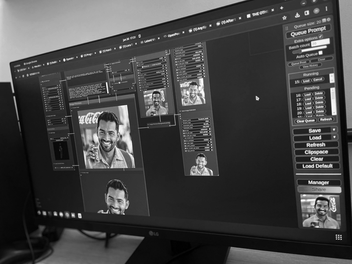 Meu papel inicial era cuidar do design. Na prática, isso significava estruturar um departamento criativo que ainda não existia, definir processos, estabelecer padrões de qualidade e garantir que cada entrega traduzisse a força da marca Coca-Cola para o contexto específico de cada engarrafador.